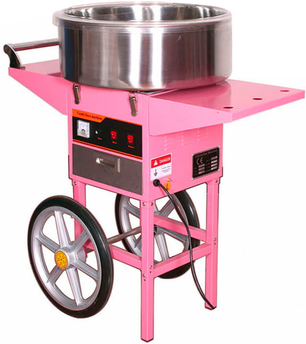 электрический, с тележкой, производительность до 3 кг/ч, ловитель из нерж.стали диаметром 520 мм, рабочая головка с ТЭНом, терморегулятор, вольтметр, ящик для сахара и ароматизаторов.