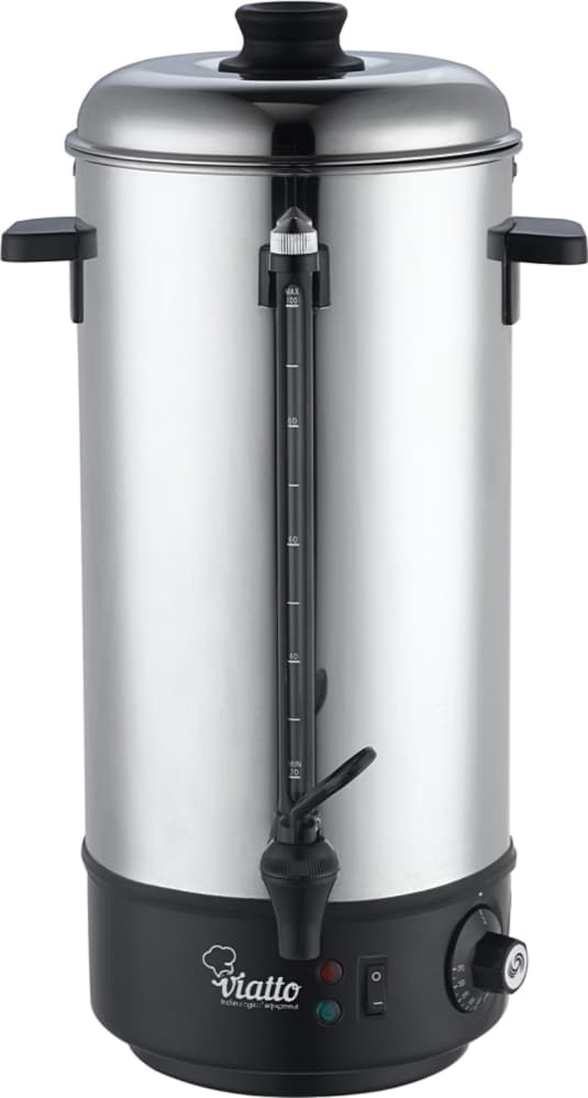 Наливной кипятильник VIATTO VA-WB10 предназначен для нагрева и кипячения воды, а также поддержания её в горячем состоянии. Оснащён терморегулятором, закрытым ТЭНом и одинарными стенками. Есть мерное стекло, позволяющее отслеживать уровень воды. Благодаря удобным ручкам оборудование можно легко переносить. Корпус изготовлен из нержавеющей стали и пластика.