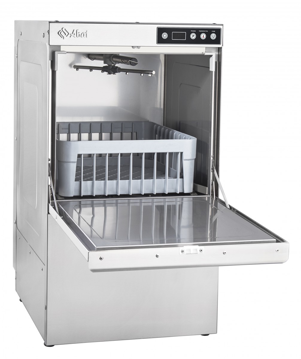 Среди особенностей данной машины – три режима мойки (2, 3 и 5 минут), что позволяет выбрать наиболее подходящий вариант в зависимости от степени загрязнения посуды. Удобная кнопочная электронная панель отображает выбранную программу мойки, а также температуру в ванне и бойлере. Высота проема моечной камеры составляет 290 мм, что позволяет мыть различные виды посуды.