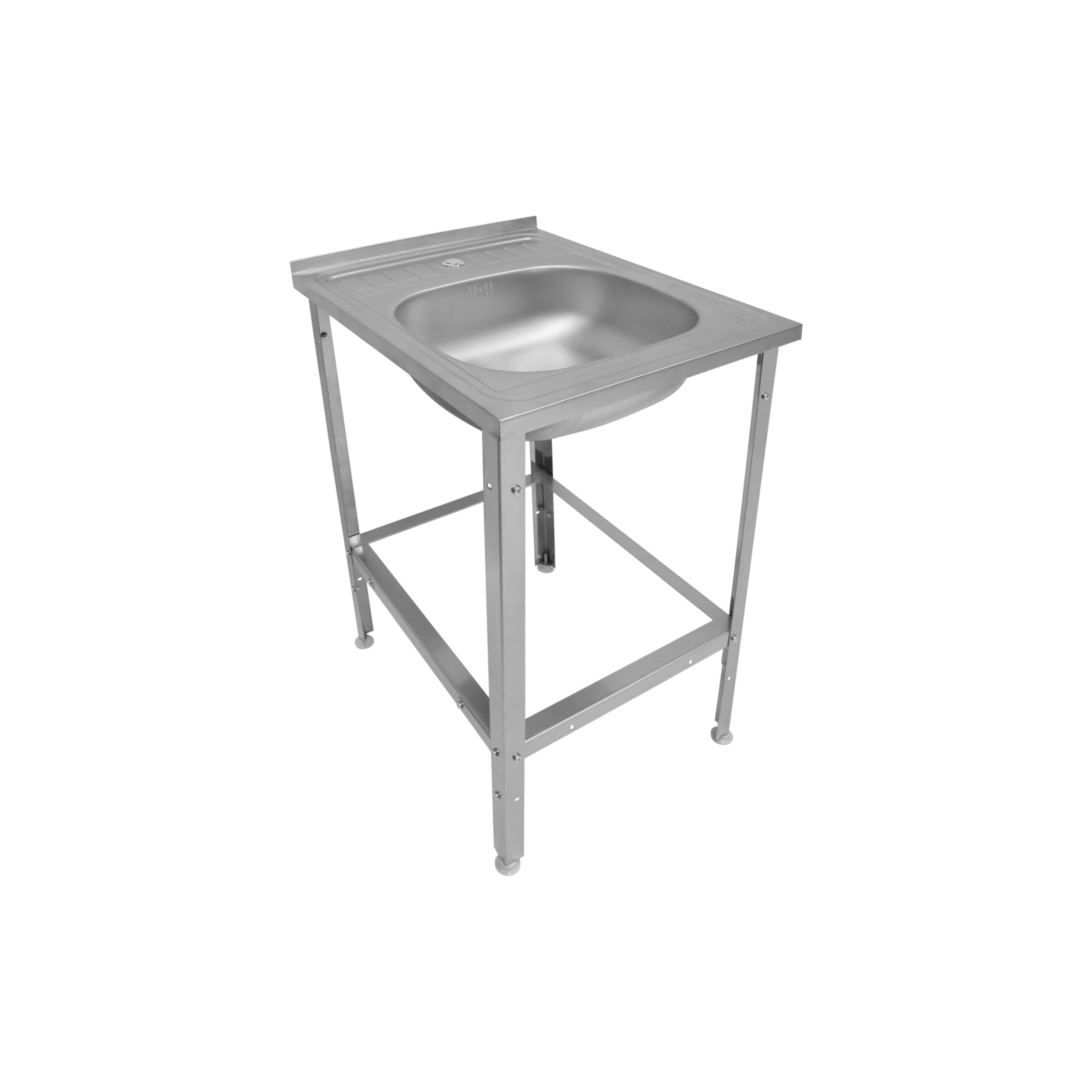 Изготовленный из высококачественной пищевой нержавеющей стали, этот рукомойник отличается прочной конструкцией. Каркас выполнен из крашеной или нержавеющей стали, а стойки имеют форму уголка размером 35х35 мм. Регулируемые по высоте ножки позволяют легко компенсировать неровности пола при установке. Ванна оборудована стандартным сливом и отверстием для смесителя, а также имеет дополнительное отверстие для перелива.