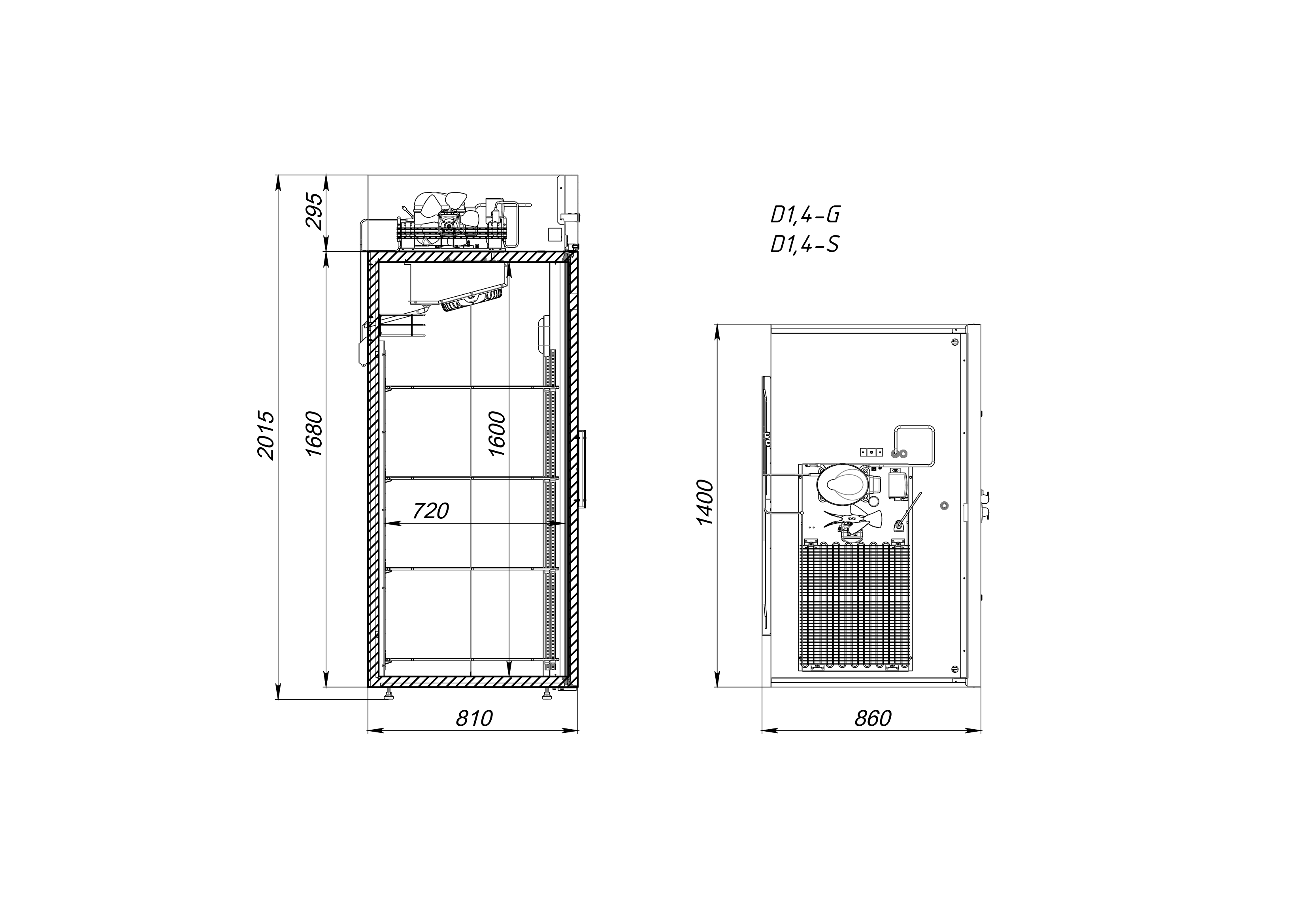 Устройство работает при напряжении 220 В и потребляет мощность не более 0,55 кВт, обеспечивая динамическое охлаждение в диапазоне температур от -5 до +5 градусов Цельсия. Высота шкафа составляет 2015 мм, ширина — 1400 мм, а глубина — 860 мм, что делает его компактным и удобным для размещения в различных интерьере.