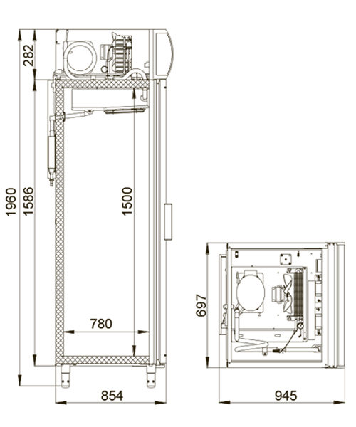 Шкаф выполнен из оцинкованной стали с полимерным покрытием, что обеспечивает долговечность и защиту от коррозии. Стеклянные двери с алюминиевыми рамами обеспечивают отличную теплоизоляцию и привлекательный внешний вид. Механизм самозакрывания и возможность изменения стороны открывания дверей делают использование шкафа максимально комфортным.