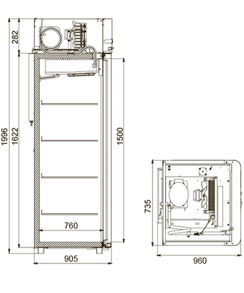 - Автоматическая система оттайки с использованием ТЭНов и системой испарения конденсата обеспечивает минимальные затраты времени на обслуживание.