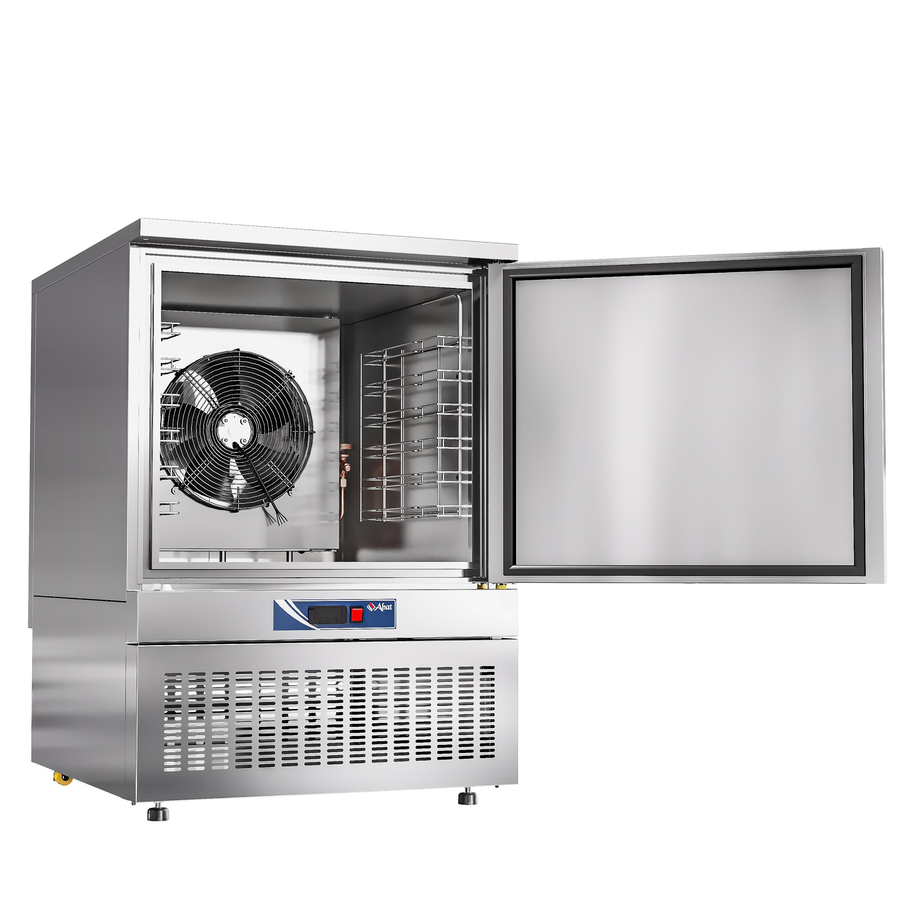 Данный аппарат способен эффективно обрабатывать продукты при входящей температуре до 90°C, снижая их до 3°C за 90 минут, а затем замораживая до -18°C в течение 240 минут. Это позволяет значительно продлить срок хранения как полуфабрикатов, так и готовых блюд, сохраняя их питательные вещества и вкусовые качества.