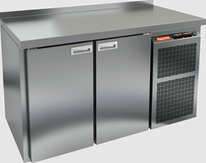 Объем устройства составляет 405 литров, что делает его идеальным для использования в ресторанах и кафе. Холодильный агрегат расположен справа, а конструкция соответствует гастрономическим стандартам. Столешница выполнена из нержавеющей стали, что обеспечивает долговечность и легкость в уходе.