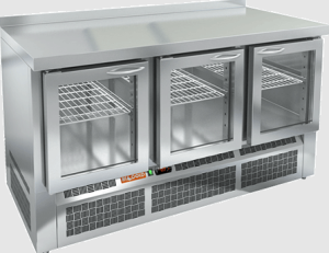 Столешница имеет толщину 50 мм и также выполнена из нержавеющей стали, что гарантирует прочность и устойчивость к механическим повреждениям. Оборудование имеет динамическую систему охлаждения и автоматическую оттайку, что упрощает его эксплуатацию.