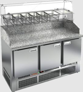 Электронная панель управления обеспечивает простоту в эксплуатации, а глубина рабочей поверхности составляет 680 мм. Стол может вместить 5 гастронорм GN1/3 и 1 GN1/2, а размер полки — 530х325 мм (GN 1/1). В комплекте предусмотрены три полки, регулируемые по высоте ножки, автоматические доводчики дверей с фиксатором открытого положения и легкозаменяемые магнитные уплотнители, что делает использование стола максимально комфортным.