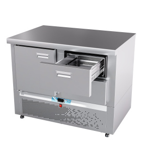 Представляем вашему вниманию морозильный стол Abat СХН-70Н-01, который идеально подходит для кратковременного хранения продуктов на предприятиях общественного питания и в торговле. Этот низкотемпературный холодильный агрегат с одним дверным отсеком и двумя ящиками формата 1/2 обеспечивает оптимальное использование рабочего пространства, сочетая функции холодильного шкафа и рабочего стола.