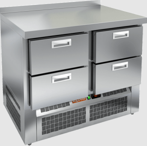 Объем морозильной камеры составляет 210 литров, что делает его идеальным выбором для ресторанов и магазинов. Холодильный агрегат расположен в нижней части конструкции, что способствует оптимальному распределению холода. Стол не имеет гастронормированных размеров, но оснащен бортиком для предотвращения случайного высыпания содержимого.