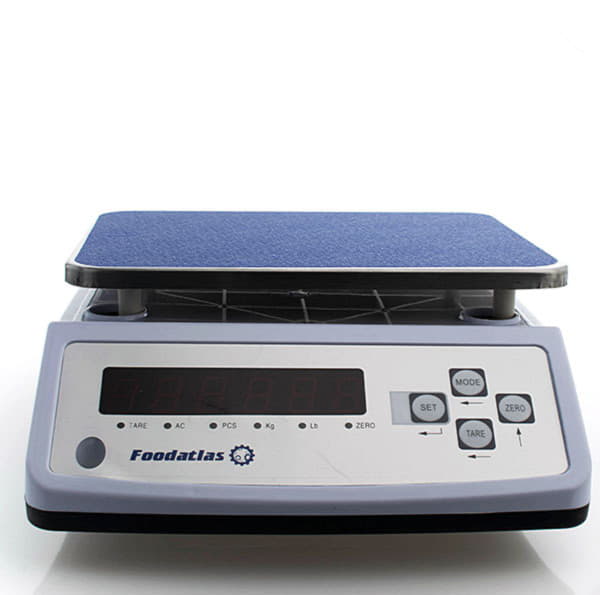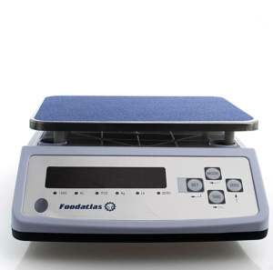 Электронные весы Foodatlas с торговыми функциями. Материал платформы: нержавеющая сталь + пластик. Яркие ЖК-индикаторы с подсветкой: вес, цена, стоимость. Память на 8 товаров.