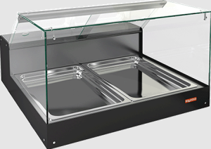Электронная панель управления позволяет легко настраивать параметры работы устройства. Витрина рассчитана на использование с напряжением 220 В и мощностью 150 Вт, что делает её экономичной в эксплуатации. Вместимость составляет 2 контейнера формата GN1/1, что обеспечивает достаточное пространство для размещения различных продуктов.