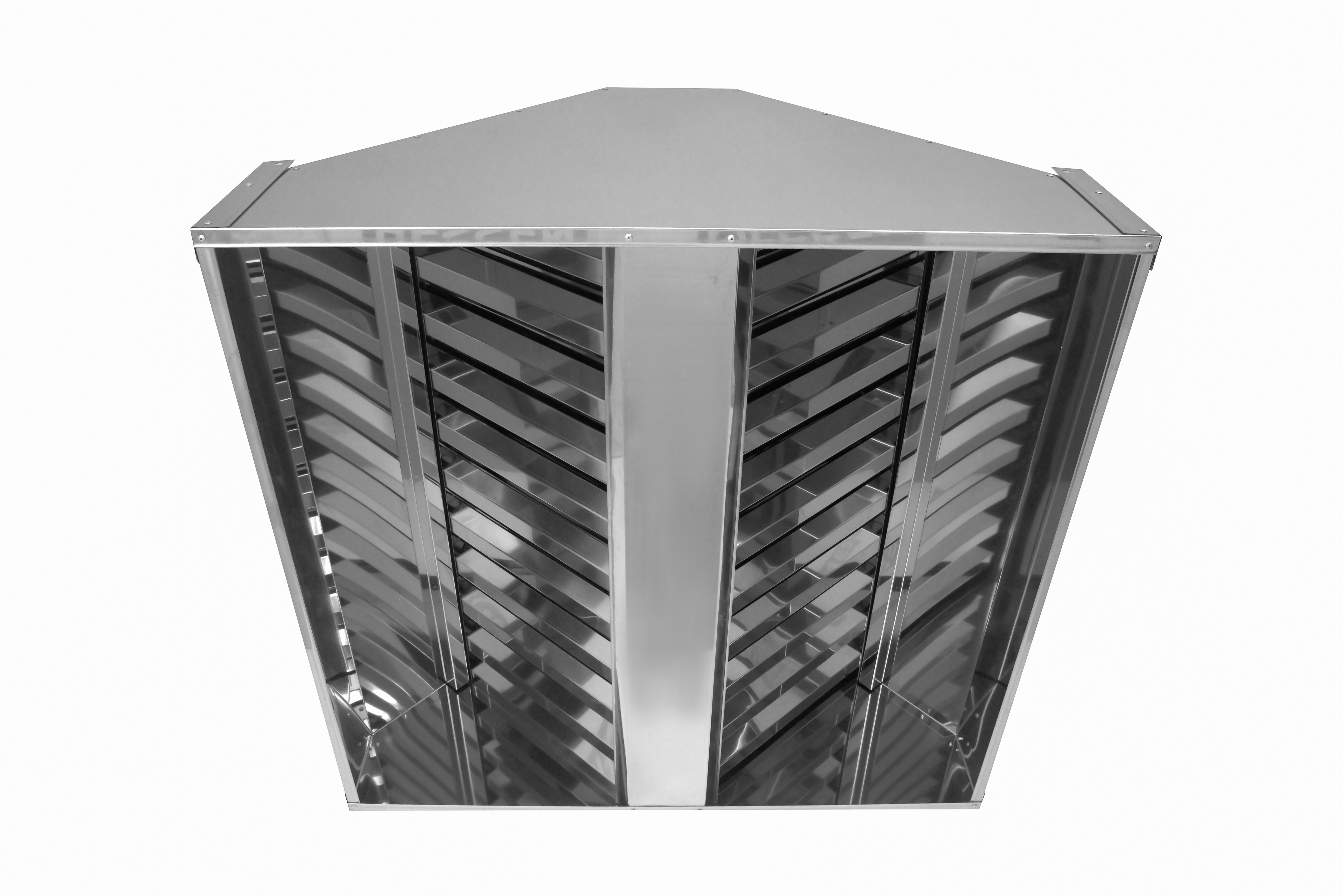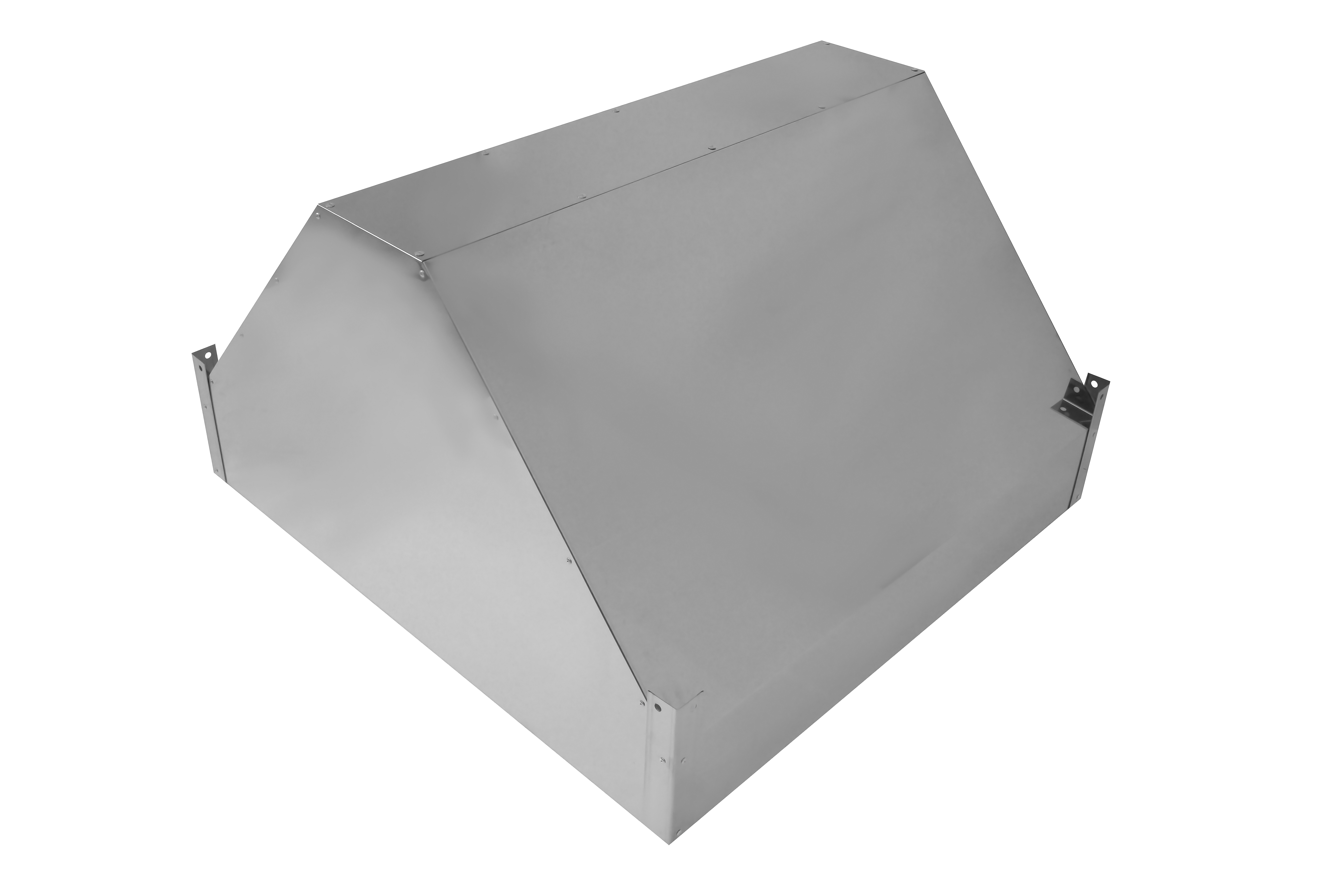 Конструкция зонта выполнена из нержавеющей стали марки AISI 430 с толщиной металла 0,6 мм, что обеспечивает долговечность и надежность. В верхней части устройства предусмотрена съемная площадка шириной 200 мм, позволяющая самостоятельно вырезать выходное отверстие для подключения вентиляционного канала.